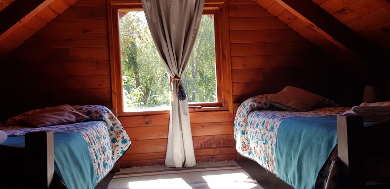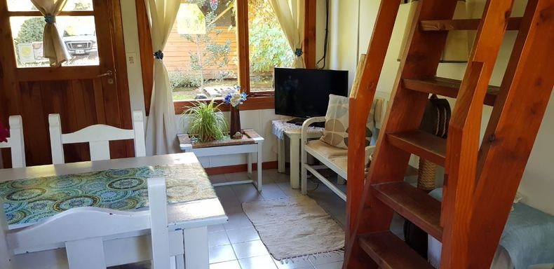 Cabaña muy bien ubicada, muy cerca de la Av Arrayanes, la principal de la Villa. Para 4 personas, 1 habitación matrimonial y una de dos camas individuales.
