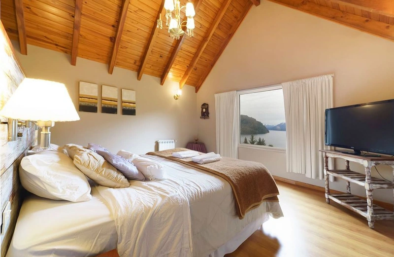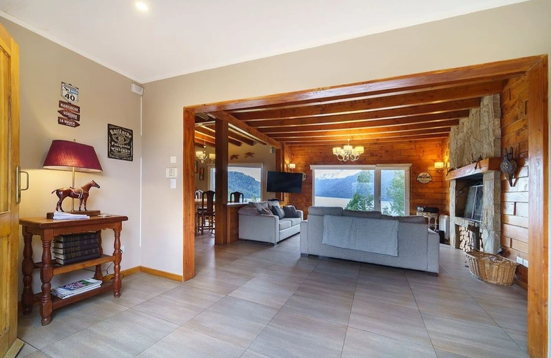 Esta confortable cabaña es de las pocas que cuenta con inmejorable vista a los cerros Belvedere e Inacayal, y a la cordillera de los andes, enmarcada en un bosque nativo de cipreses, arrayanes y cohiues.