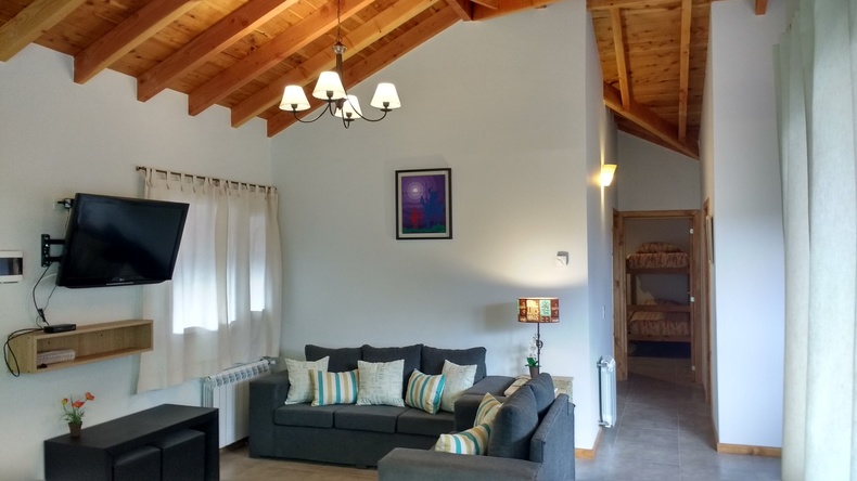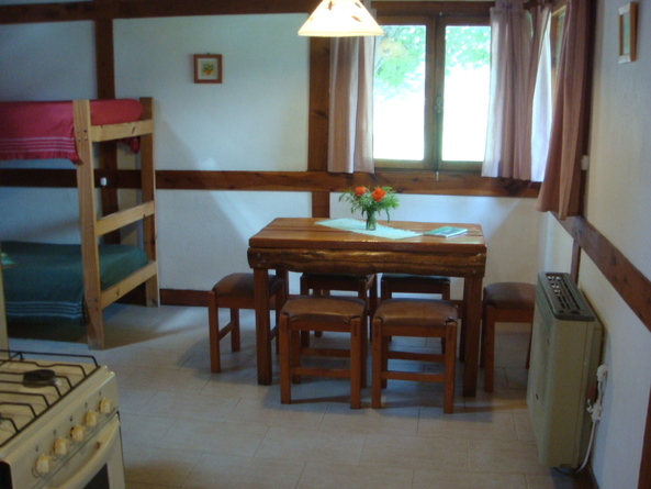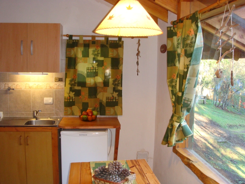 Somos un complejo de vacaciones con dos modalidades de alojamiento: a) Búngalows: Son monoambientes tipo “mini apart hotel” con camas marineras, transformables a dos plazas, (excepto “Abedul” que es de dos ambientes con dormitorio matrimonial), blanco de cama, baño privado completo (no incluye toallas), TV satelital, Wi-Fi, cocina completa con heladera, horno, utensilios, vajilla, calefacción, mesa de comedor, sillas, y excelente vista a la Cordillera de los Andes. Cada búngalow cuenta con estacionamiento. b) Dormis Medio Servicio: Habitaciones de dos a seis personas con calefacción, camas marineras dobles con blanco de cama y frazadas (No incluye toallas). Anafe de dos hornallas, heladera, pileta de cocina con monocomando c/agua caliente y fría, utensilios, vajilla, mesa de comedor, bancos y Wi-Fi. Utilizan los sanitarios y duchas generales del camping -con duchas individuales y privadas con agua caliente las 24 hs.-, amplios espejos, lavamanos con mezcladoras de agua fría y caliente- a pocos metros de allí e incluyen estacionamiento. El predio cuenta con zonas de esparcimiento, caminos internos, quincho, parrillas, mesas y bancos, electricidad, iluminación, estacionamientos privados y generales, en una superficie de 1 hectárea con cerco perimetral. Los esperamos!!
