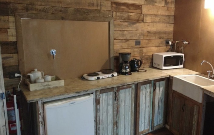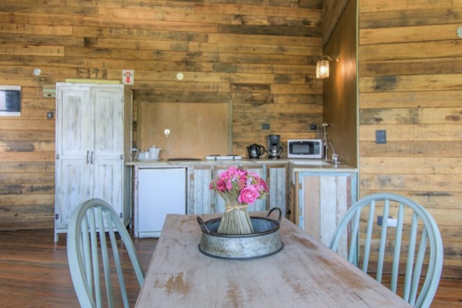 Posee Microondas, hornallas, heladera, vajilla y cubiertos.
