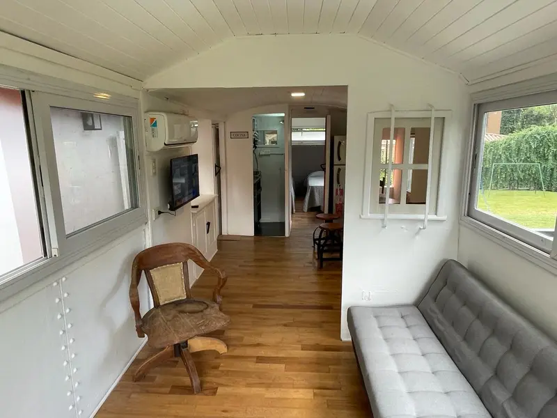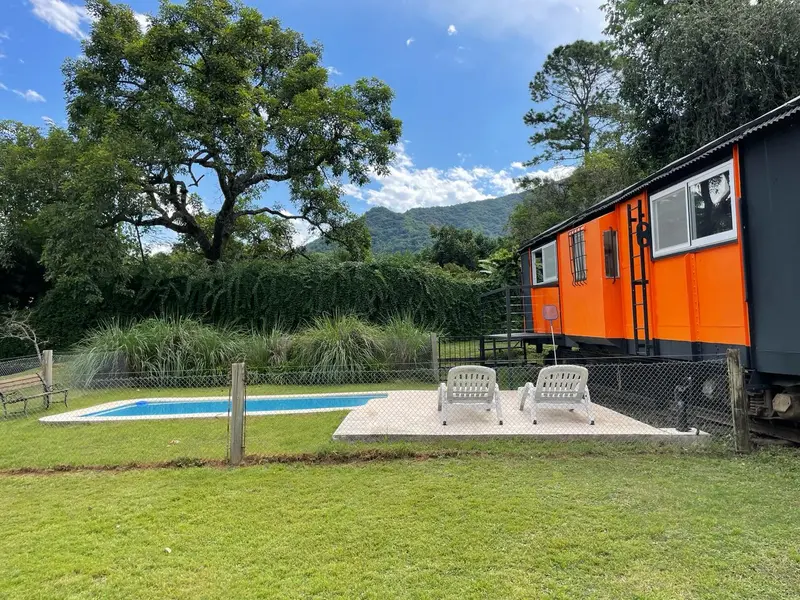 Es un vagón de trenes del año 1912 reciclado para recibir 4 huéspedes. Tiene jardín, pileta, parrilla, juegos infantiles, estacionamiento, todo lo necesario para pasar unos días muy agradables, sintiendo la tranquilidad de la montaña.