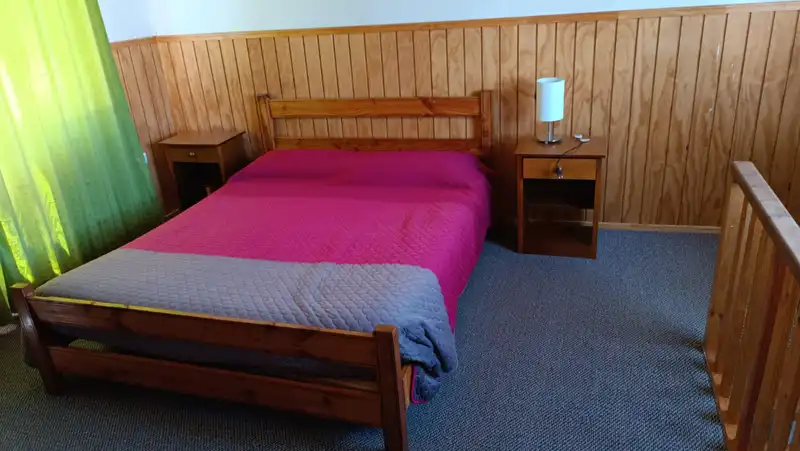 Se arrienda acogedora cabaña en Villarrica con capacidad hasta 6 personas, a siete cuadras del centro. Ubicada en un barrio tranquilo libre de ruidos y atochamientos.