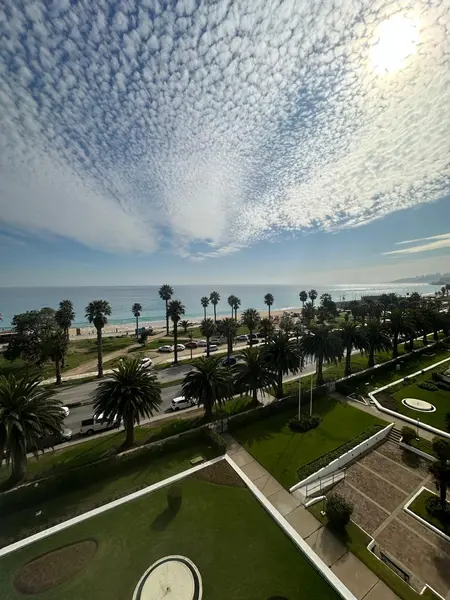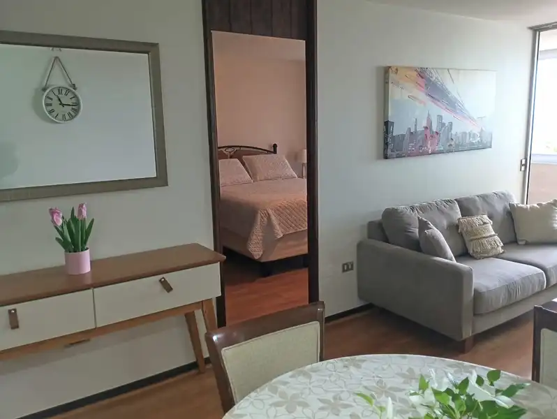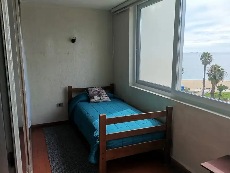 Amplio departamento para 4 personas en Avenida San Martín, espectacular vista al mar, emplazado en la zona del Muelle Vergara , en un hermoso condominio con amplios jardines ubicado en Viña del Mar , Región de Valparaíso , Chile . Se encuentra totalmente amoblado, equipado, con WiFi y cuenta con un dormitorio amplio con cama matrimonial y baño en suite, y segunda pieza con dos camas de 1 plaza con un segundo baño, también cuenta con una cocina totalmente equipada , living equipado completamente, amplia vista al mar desde toda la propiedad hacia Reñaca, cuenta con estacionamiento privado subterráneo, incluye toalla de baño, sábanas, secador de pelo , lavandería, y tiene conectividad directa al plan de Viña , cercano a mall Marina Arauco, supermercados, bancos, restaurantes , centro asistencial y ubicado en un exclusivo barrio residencial de Viña del Mar. También conectado a la playa (a 80 mts ) y borde costero peatonal. Cuenta con dos ascensores con vista panorámica , seguridad controlada con cámaras de seguridad y conserjes las 24 horas.