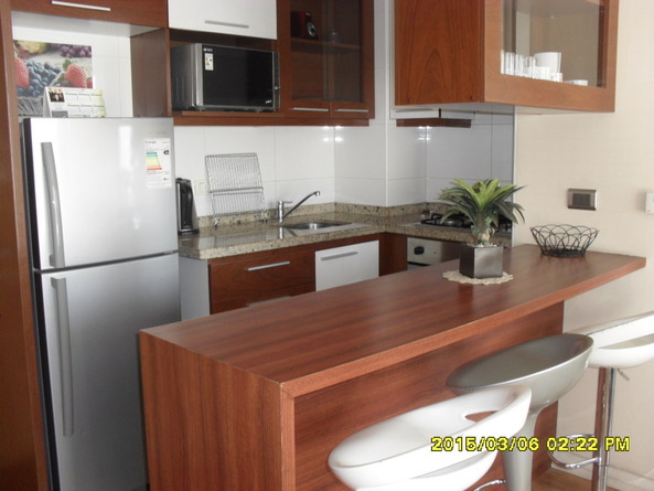 Departamento muy bien equipado en un piso 03 con TV. Cable, Wifi, estacionamiento cubierto, terraza. Tiene una cama matrimonial, un sofá-cama que extendido alcanza un ancho de 124 cm. y si lo pide se le puede agregar un colchón para 1 persona más.