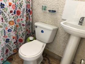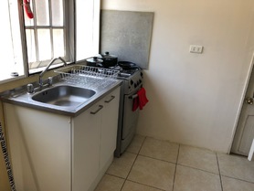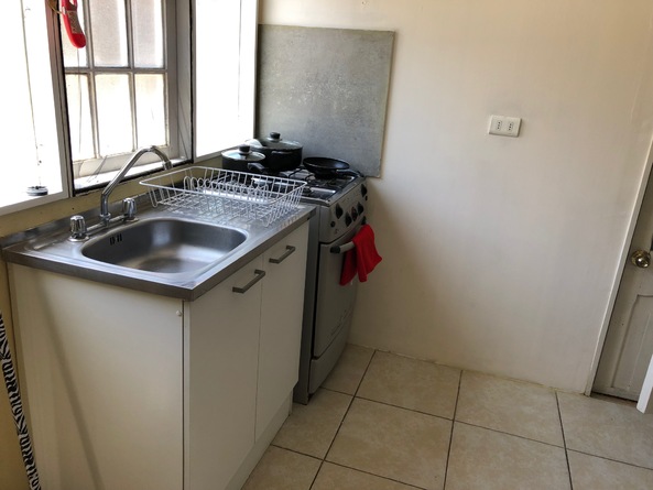 El departamento de interior cuenta con entrada independiente, cocina equipada y baño privado con agua caliente todo el día.