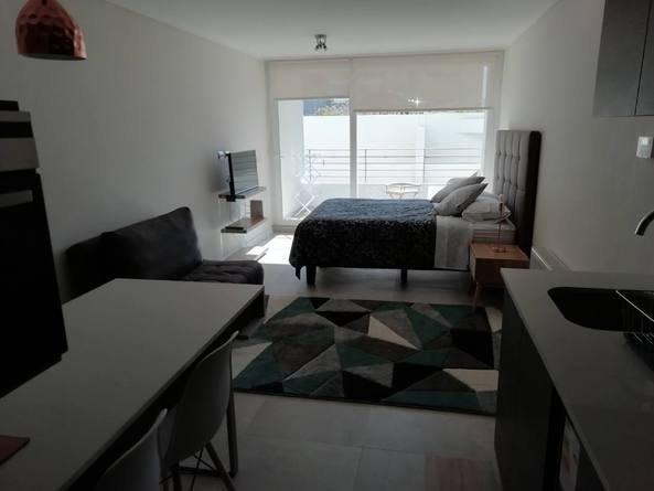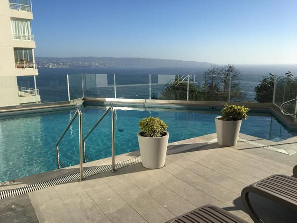 Arriendo lindo depto estudio nuevo en el mejor sector de Reñaca para 2 a 3 personas. El depto posee una cama de 2 plazas, un futón, comedor, cocina equipada, baño con shower door, terraza con vista laeral al mar y un estacionamiento. El edificio es de moderna arquitectura y cuenta con piscina temperada y otra exterior, gimnasio, sauna y quinchos. El edifici está muy bien ubicado frente a locales comerciales, supermercados y locales de comida y también cuenta con locomoción a la puerta.