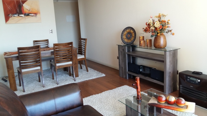 En el centro de viña de viña del mar, edificio de 3 años de antiguedad, con piscina temperada techada en piso 23, departamento en piso 12 con 3 dormitorios (pieza 1 cama matrimonial, pieza 2 cama matrimonial y pieza 3 cama de 1.5 plazas) y 2 baños, equipado para 5 personas, con terraza, completamente equipada, con estacionamiento en subterraneo exclusivo. Internet wi fi, LED en pieza principal de 40" con TV cable y en living de 49". Se considera un cobro adicional por aseo final de $20.000. (No incluye aseo diario)